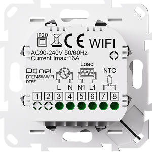 Donel Термостат с датчиком пола, программируемый с Wi-Fi , 16 A, 55*55 мм., белое стекло, серия DTEF