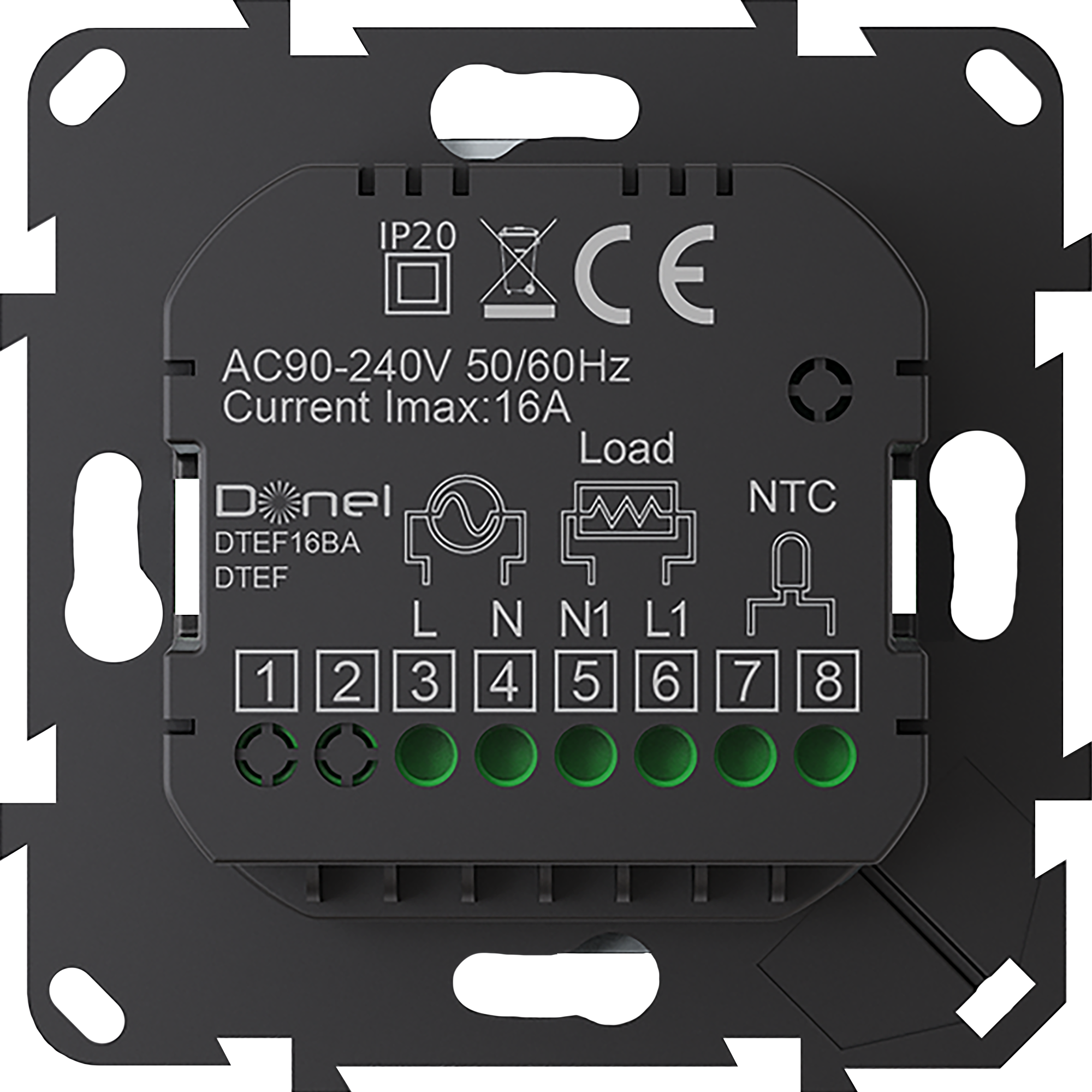 Donel Термостат с датчиком пола, программируемый, 16 A, 55*55 мм.черный, ручка настройки,серия DTEF