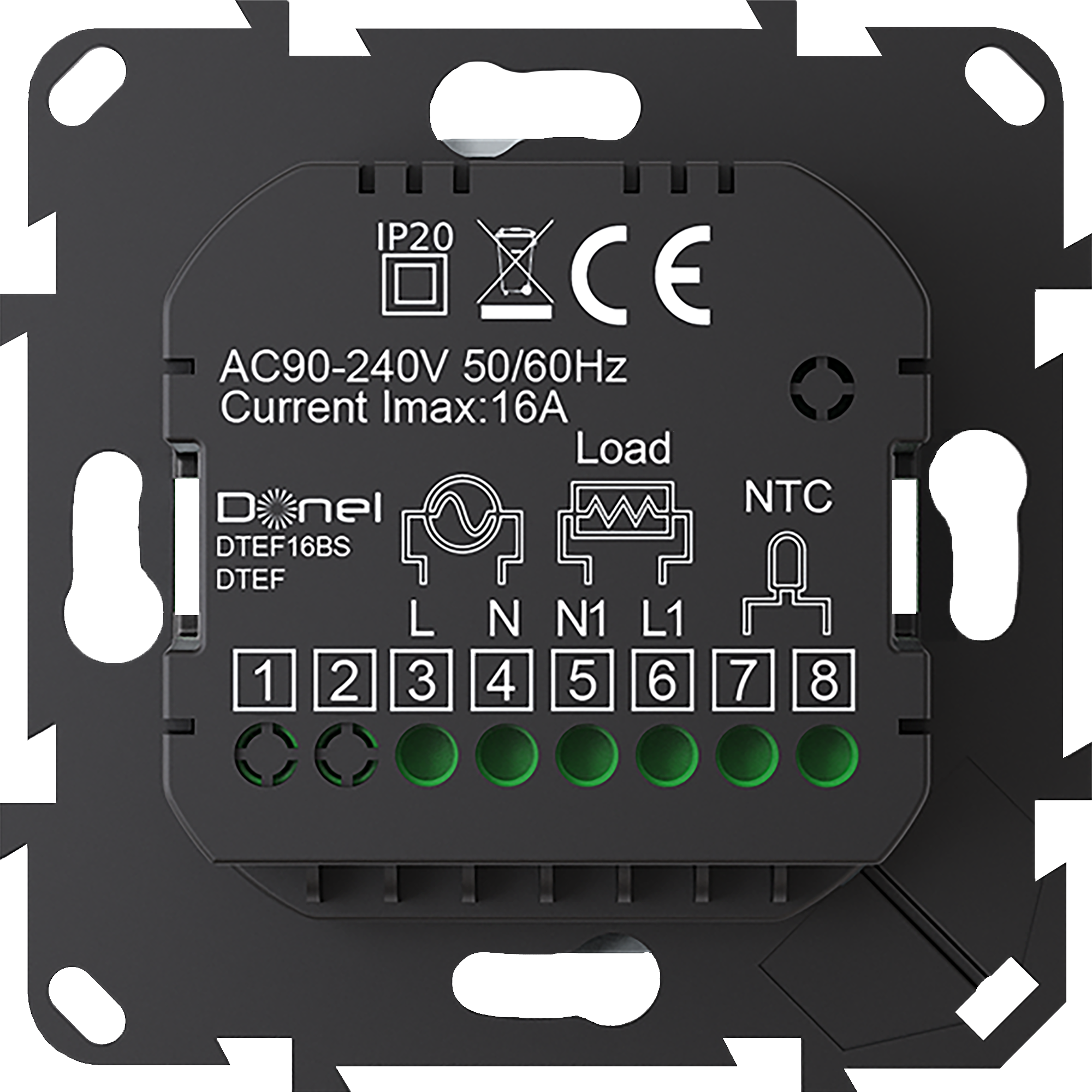 Donel Термостат с датчиком пола, программируемый с Wi-Fi , 16 A, 55*55 мм. черное стекло, серия DTEF