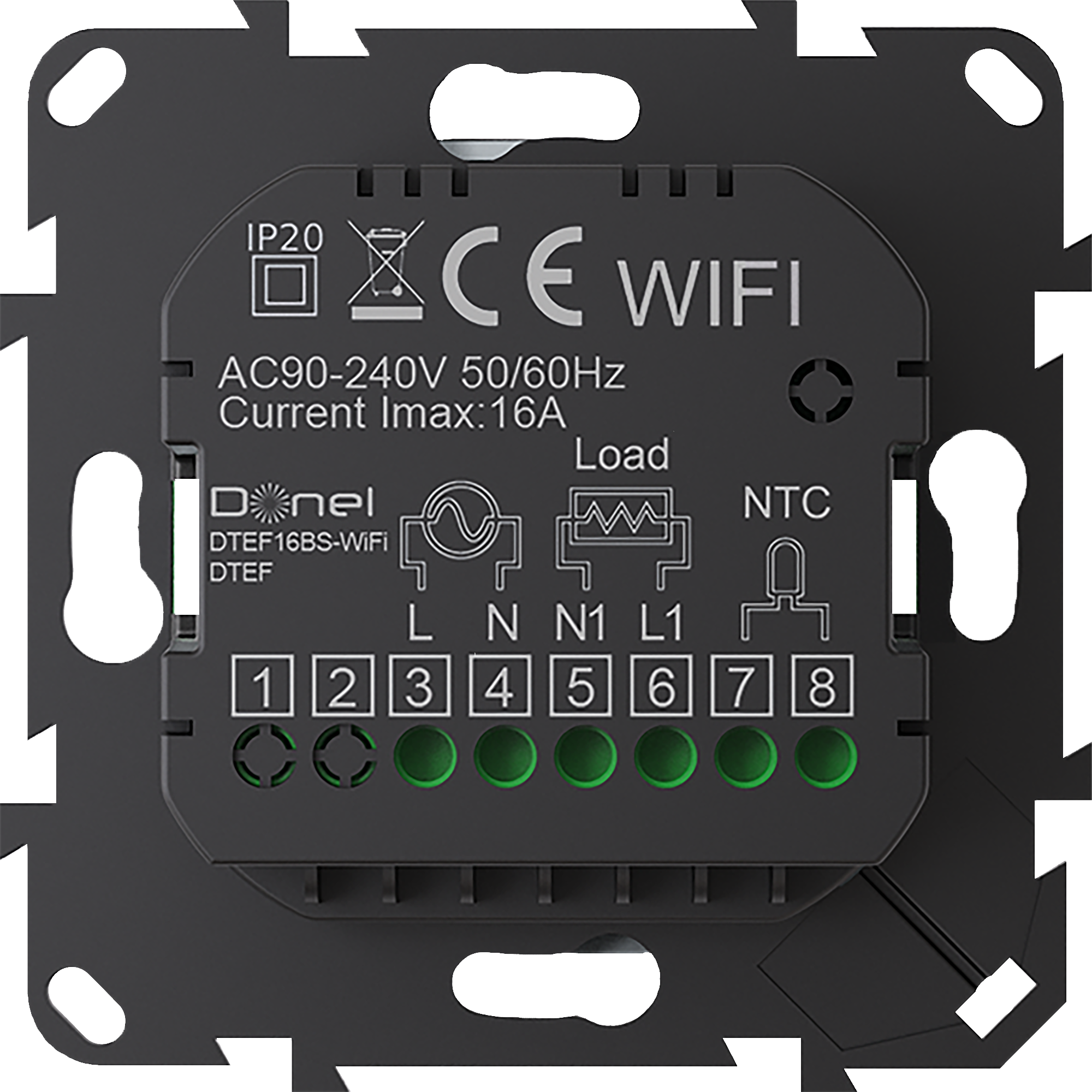 Donel Термостат с датчиком пола, программируемый с Wi-Fi , 16 A, 55*55 мм., белое стекло, серия DTEF