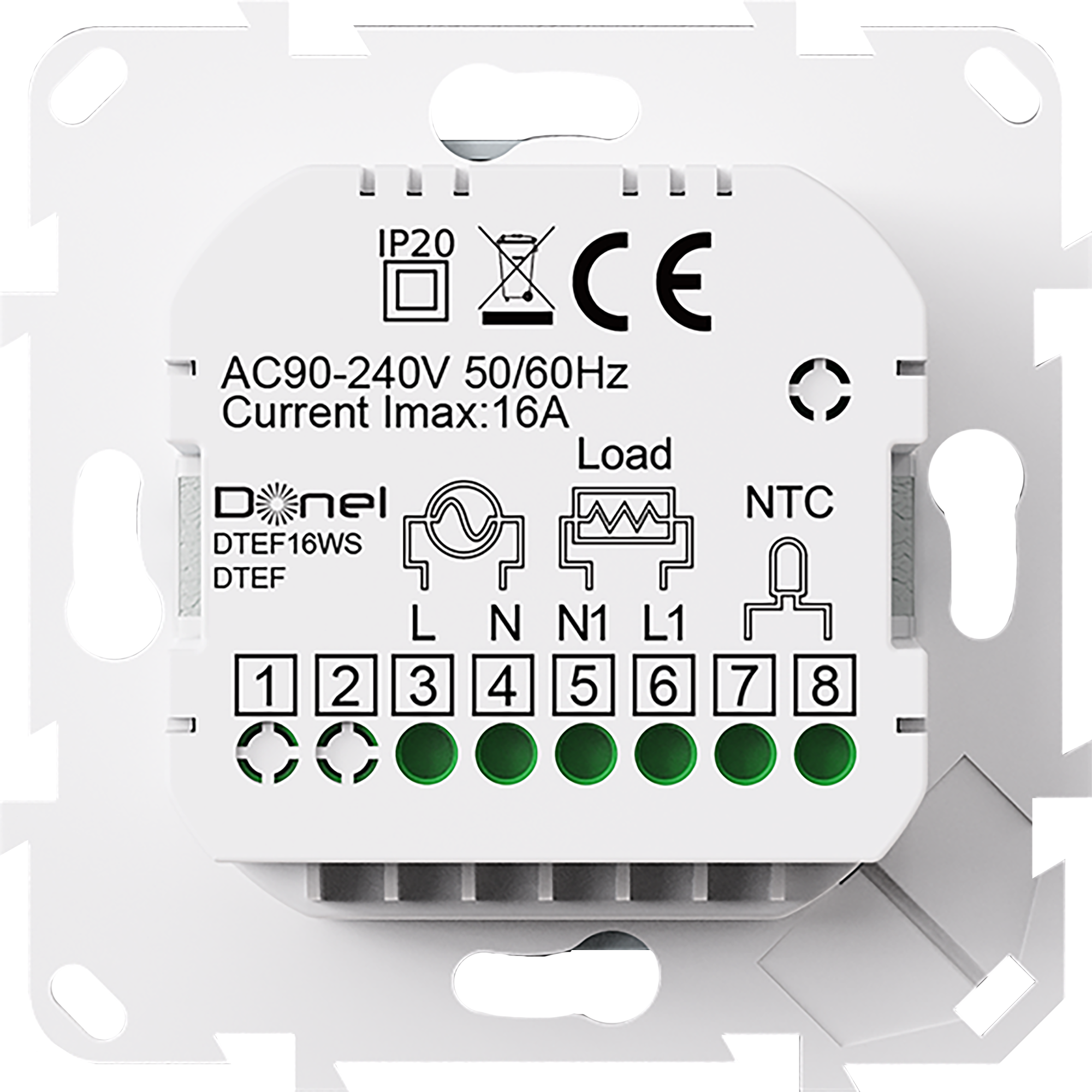 Donel Термостат с датчиком пола, программируемый с Wi-Fi , 16 A, 55*55 мм., белое стекло, серия DTEF