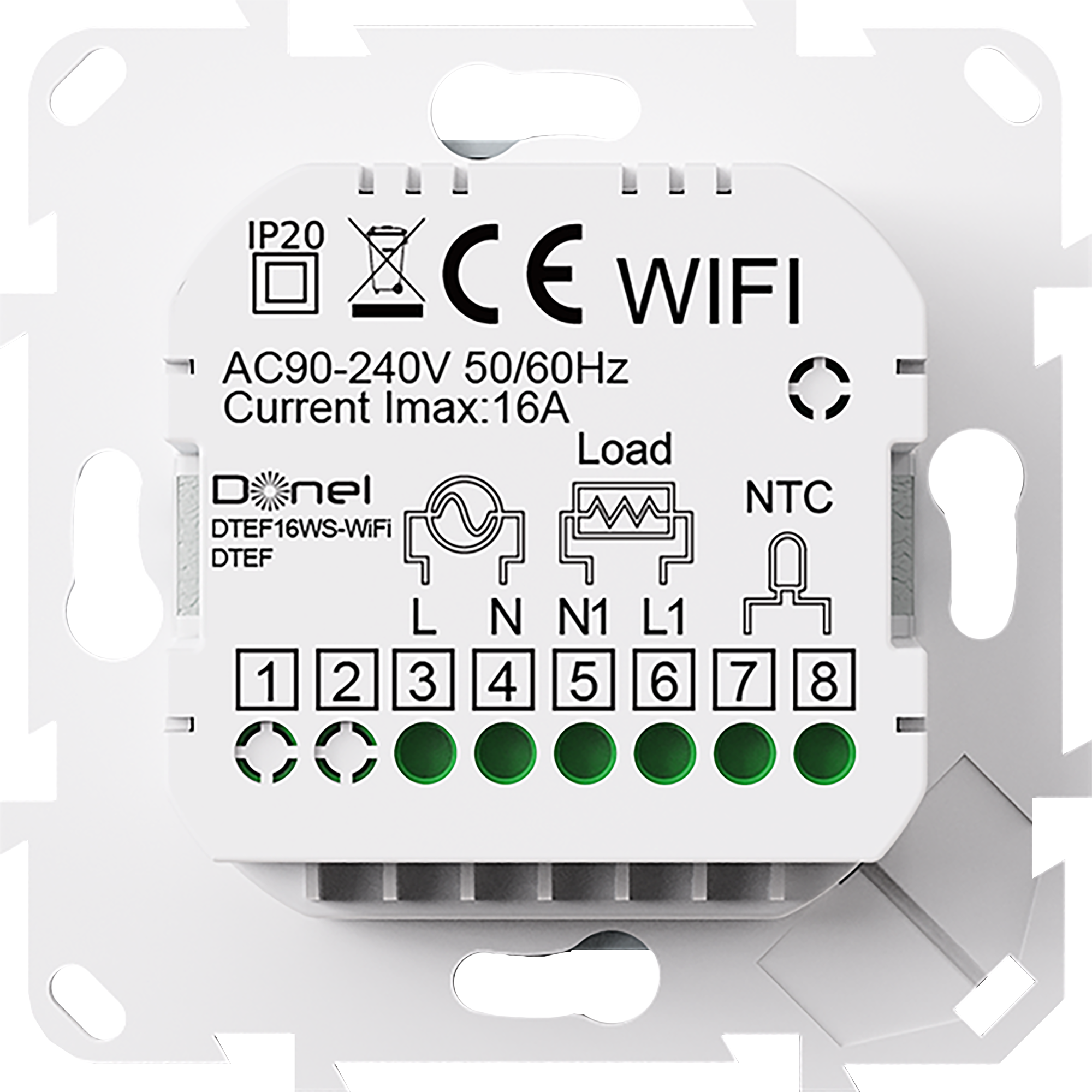 Donel Термостат с датчиком пола, программируемый с Wi-Fi , 16 A, 55*55 мм., белое стекло, серия DTEF