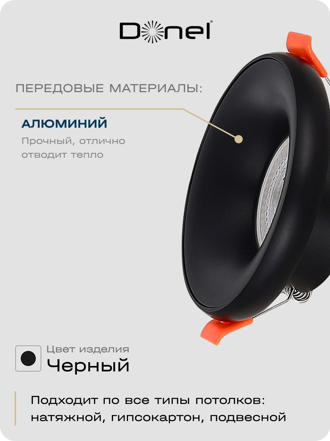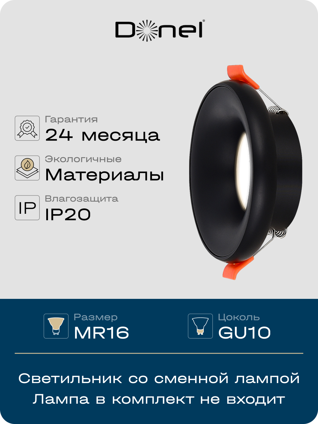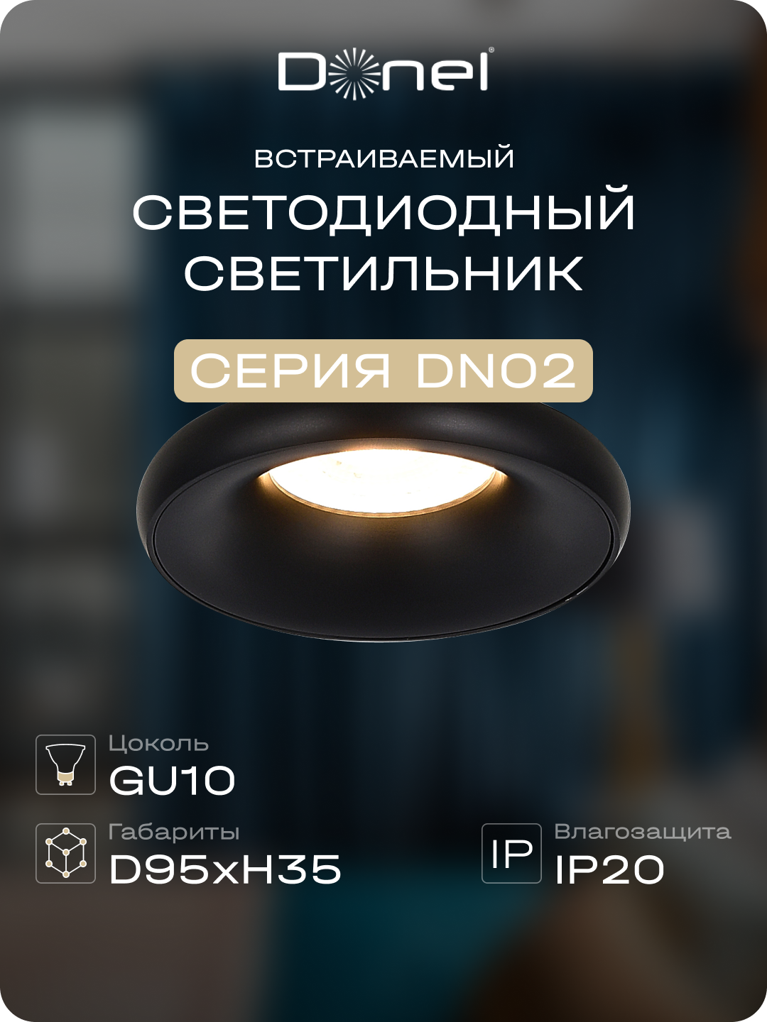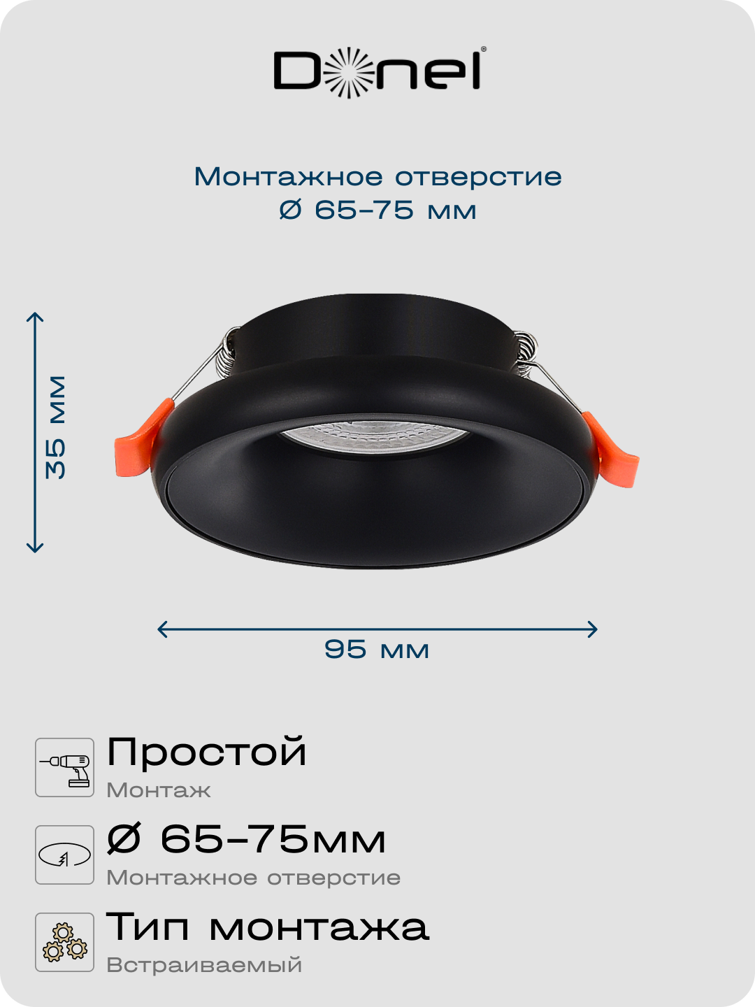 Donel, св-к встроенный, цвет ЧЕРНЫЙ, D95xH35мм, под лампу GU10, IP20, серия: DN02