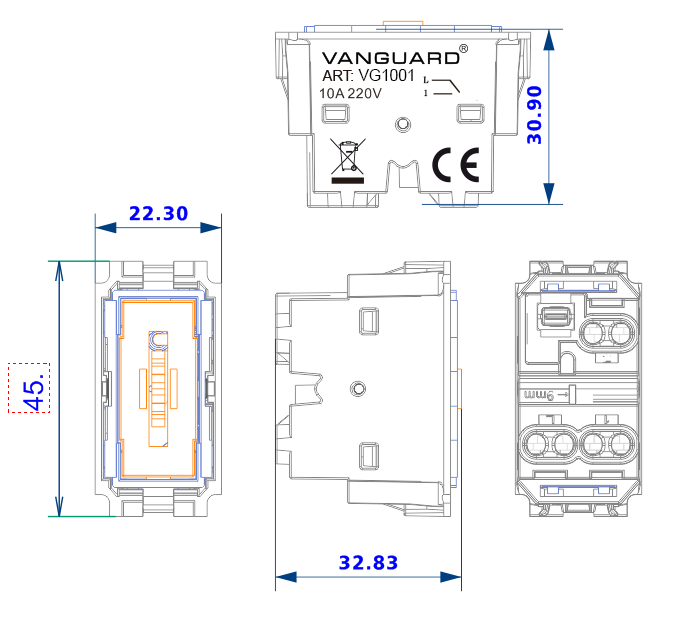 Vanguard Valero Выключатель 10А винтовые клеммы 1 модуль