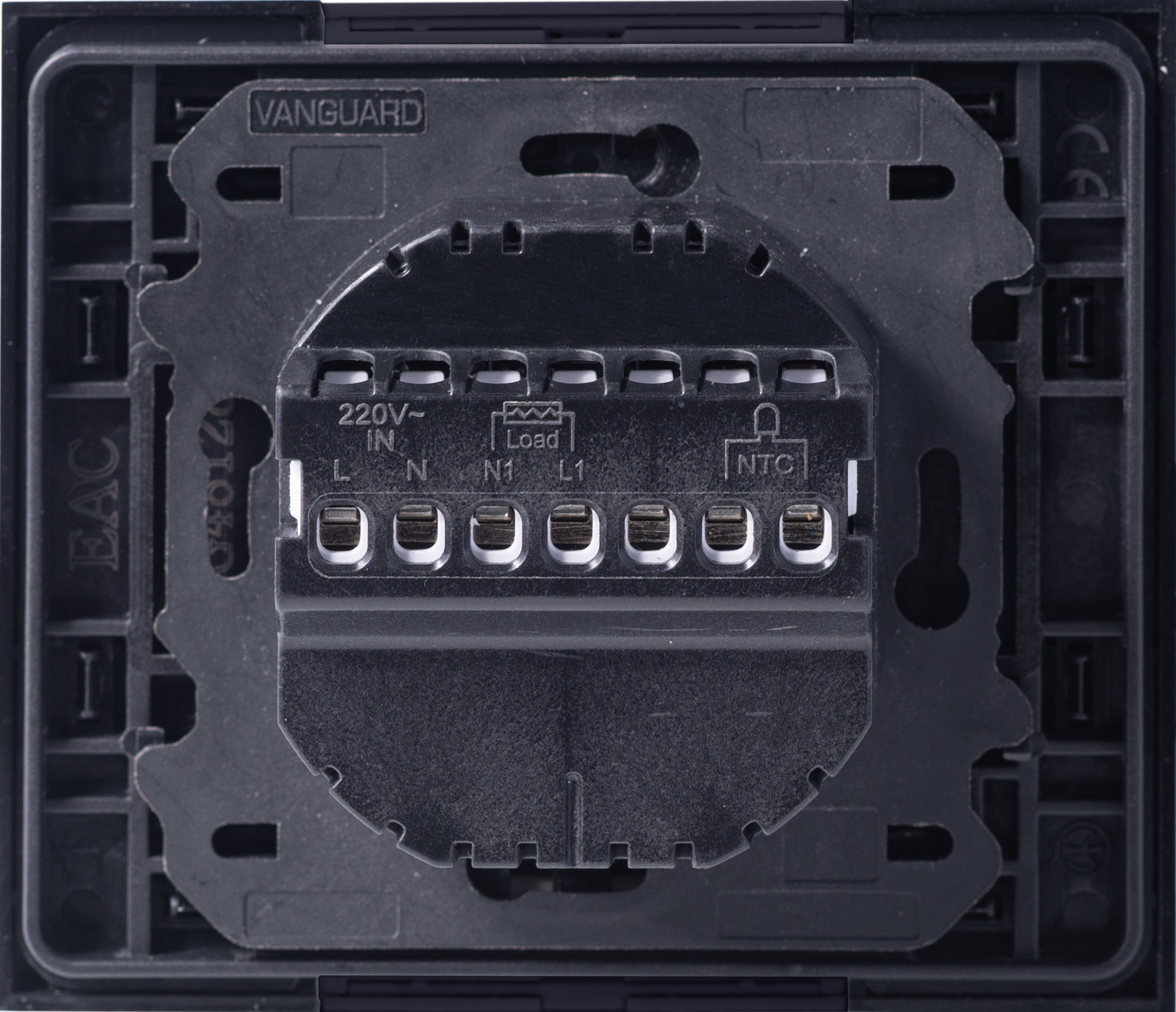 Vanguard Valero Термостат для тёплых полов цифровой с дисплеем с выносным датчиком 230В 16А 2 модуля, в сборе с суппортом, Черный