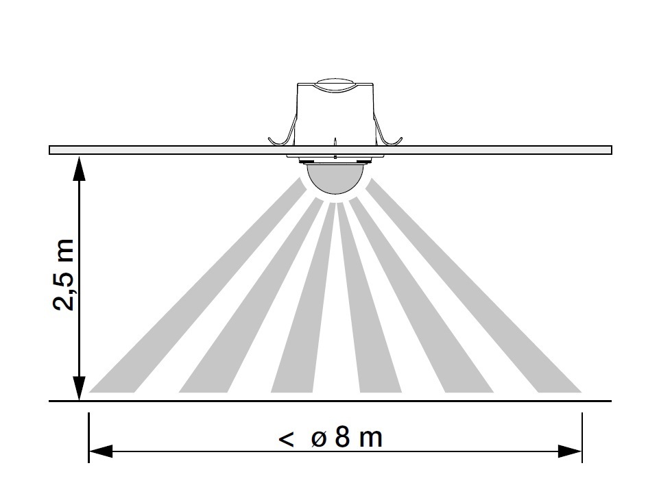 2-2000 лк, ∞ / дневной свет; механическая регулировка с помощью поворотного регулятора на датчике