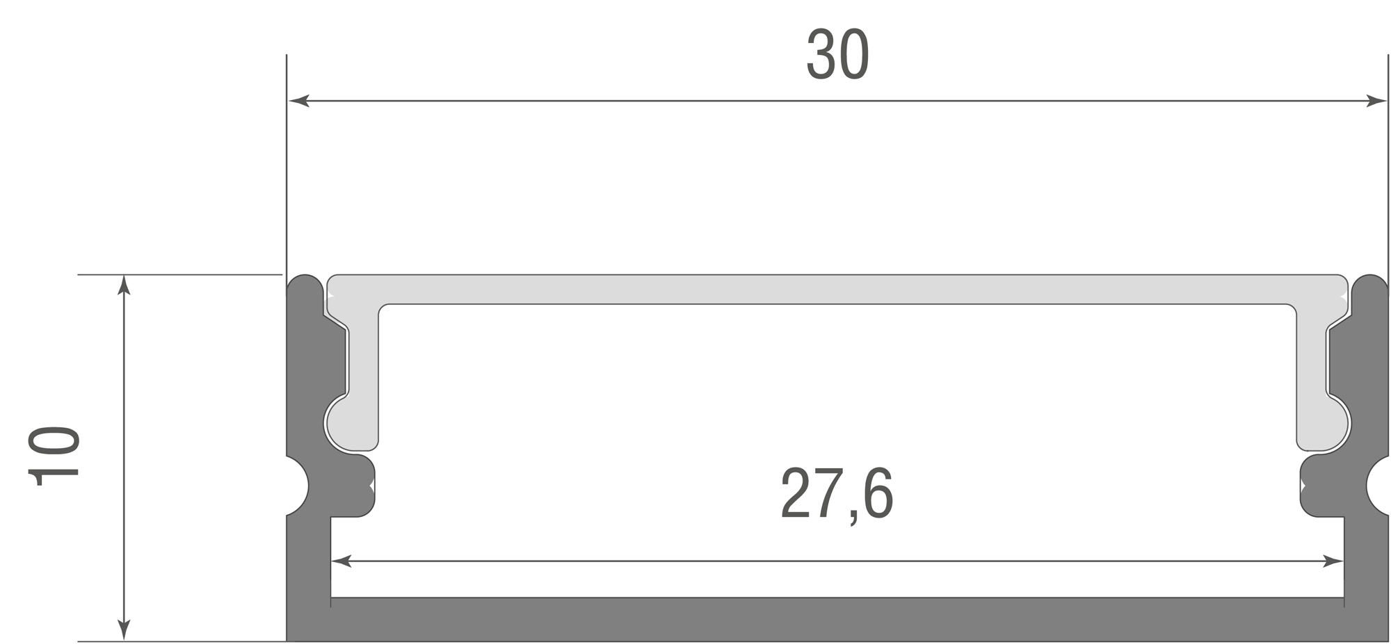 Накладной алюминиевый анод. профиль, 30х10х2000мм. В комплекте матовый экран, 4 торцевые заглушки, 4 крепежа, алюминий