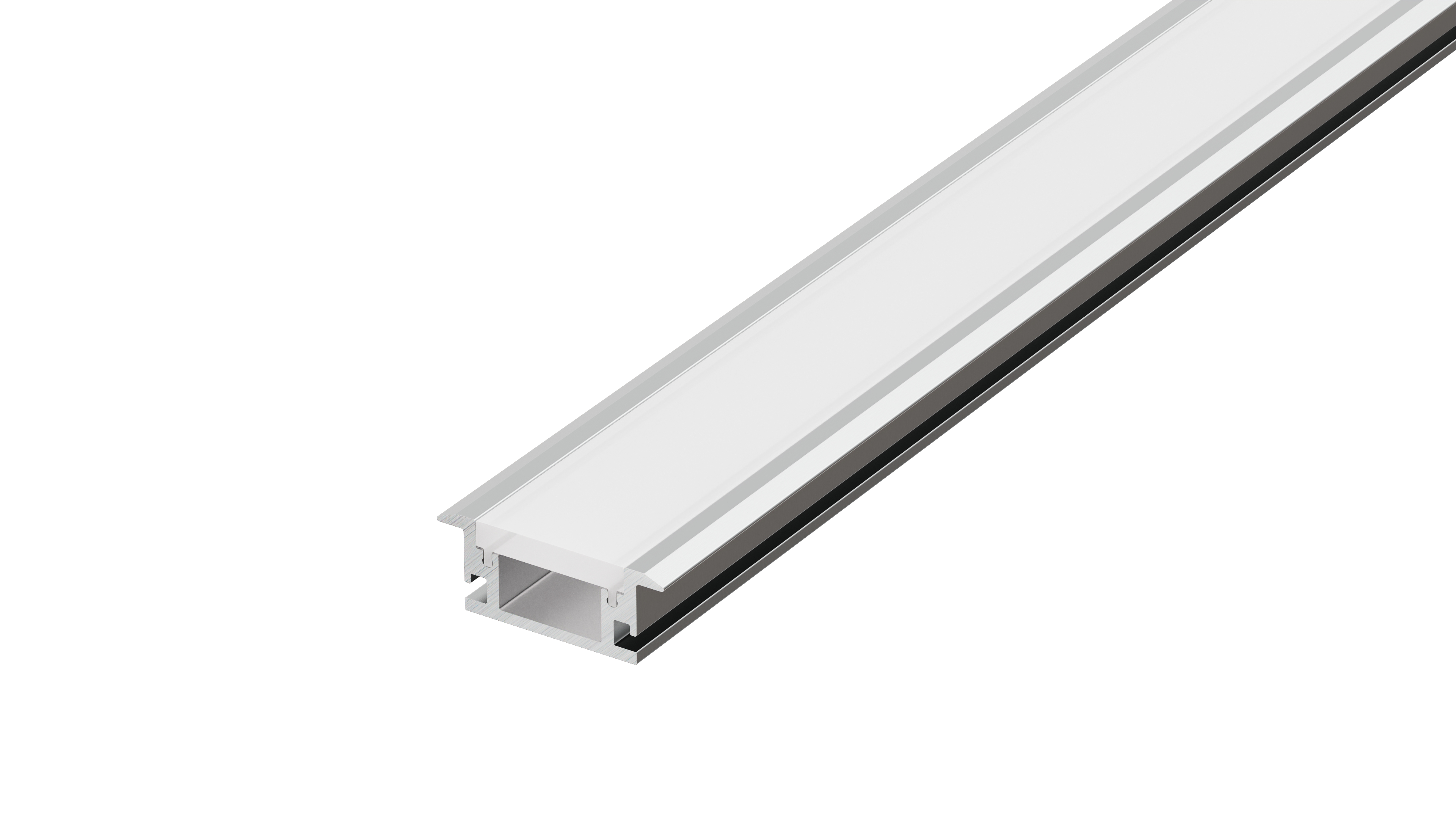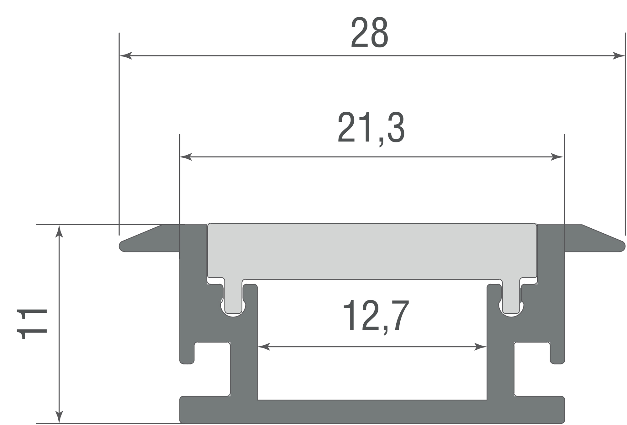 Встраиваемый алюминиевый анод. профиль в пол, 28х11х2000мм. В комплекте матовый экран, 4 торцевые заглушки, алюминий