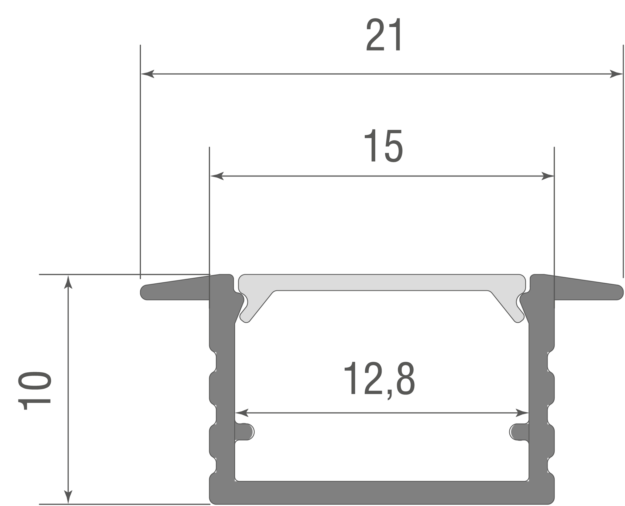 Встраиваемый алюминиевый анод. профиль, 21х10х2000мм. В комплекте матовый экран, 4 торцевые заглушки, 4 крепежа, алюминий