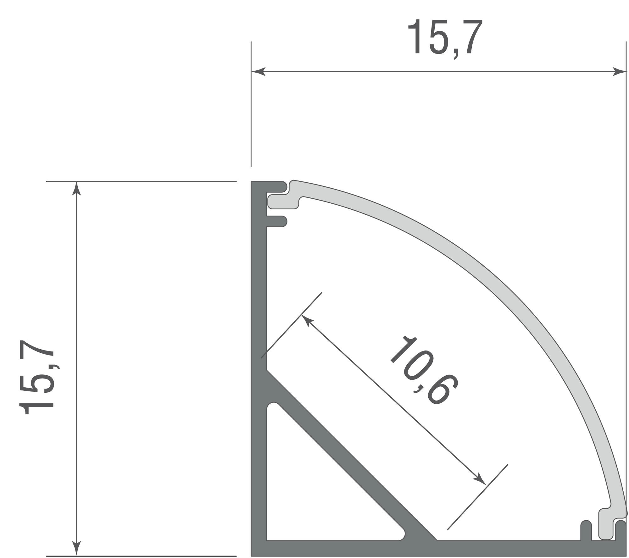 Donel, Угловой алюминиевый анод. профиль, 15,8х15,8х2000мм. В комплекте матовый экран, 4 торцевые за