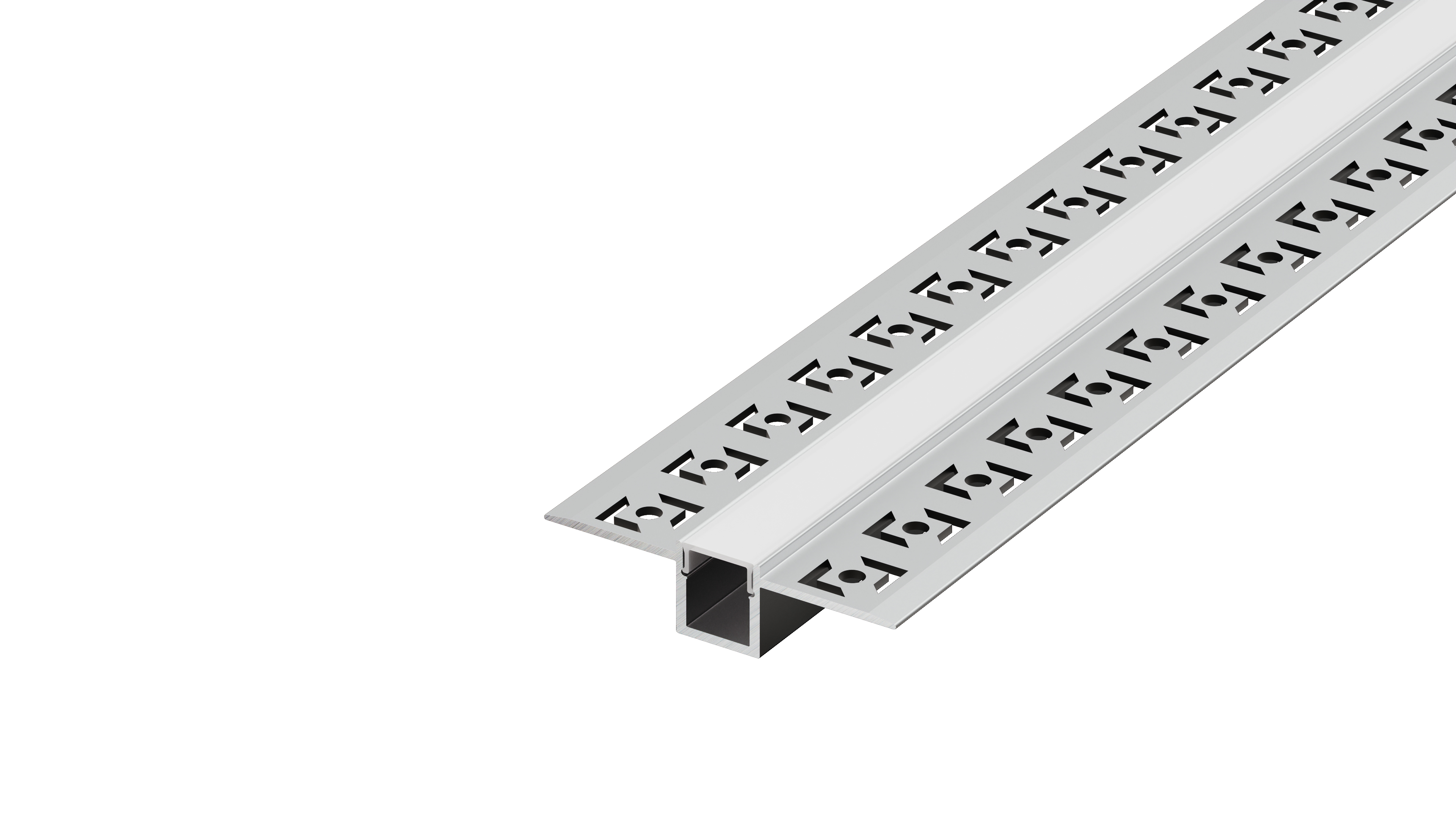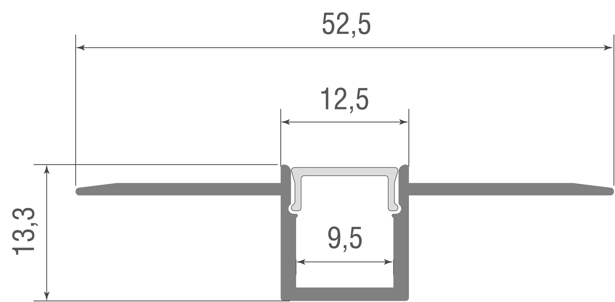 Встраиваемый алюминиевый анод. профиль под шпаклевку, 52,5х13,3х2000мм. В комплекте матовый экран, 4 торцевые заглушки, алюминий