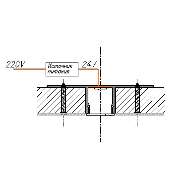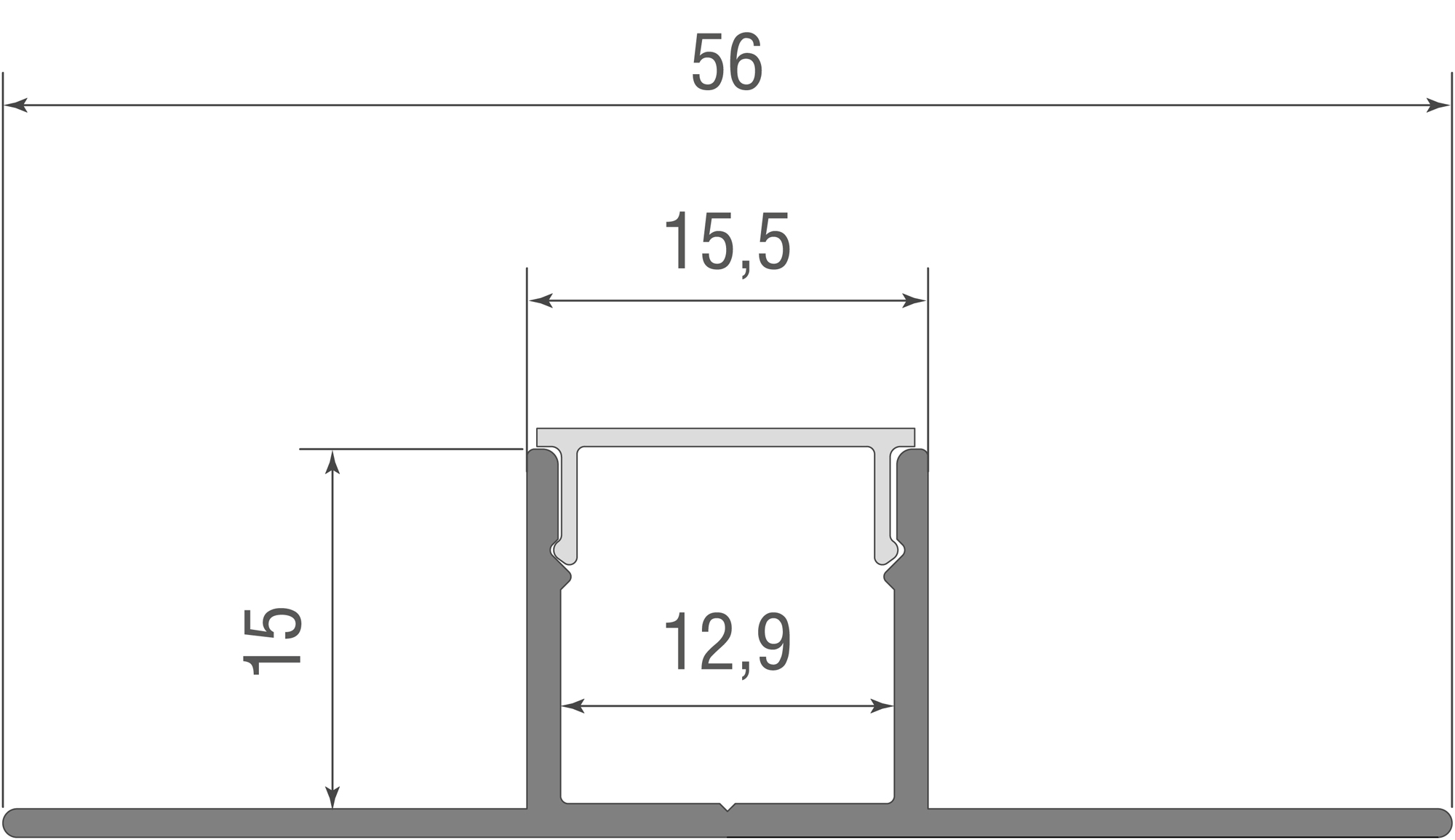 Встраиваемый алюминиевый анод. профиль под ГКЛ 12,5мм, 55х14,5х2000мм. В комплекте матовый экран, 4 торцевые заглушки, алюминий