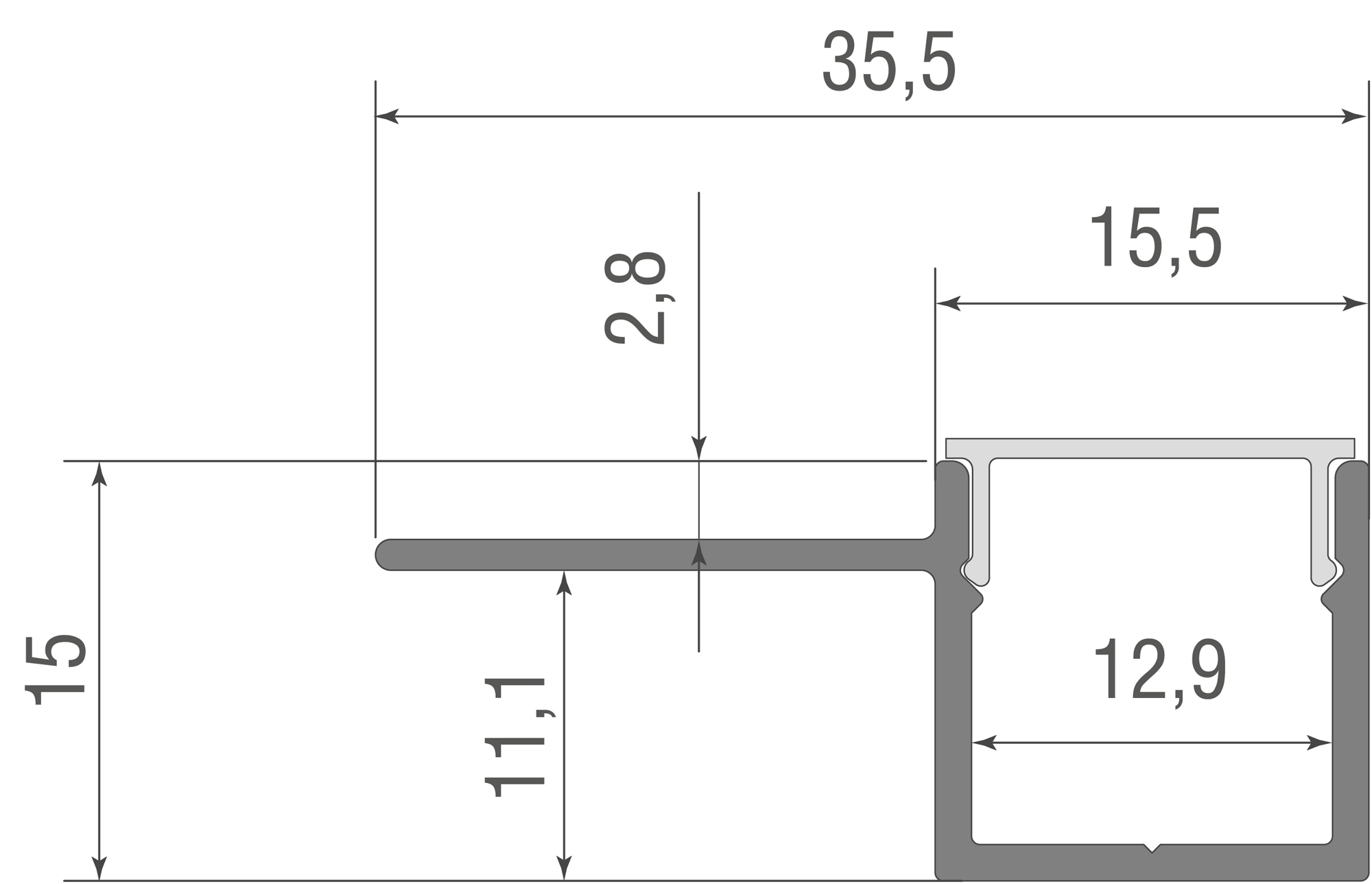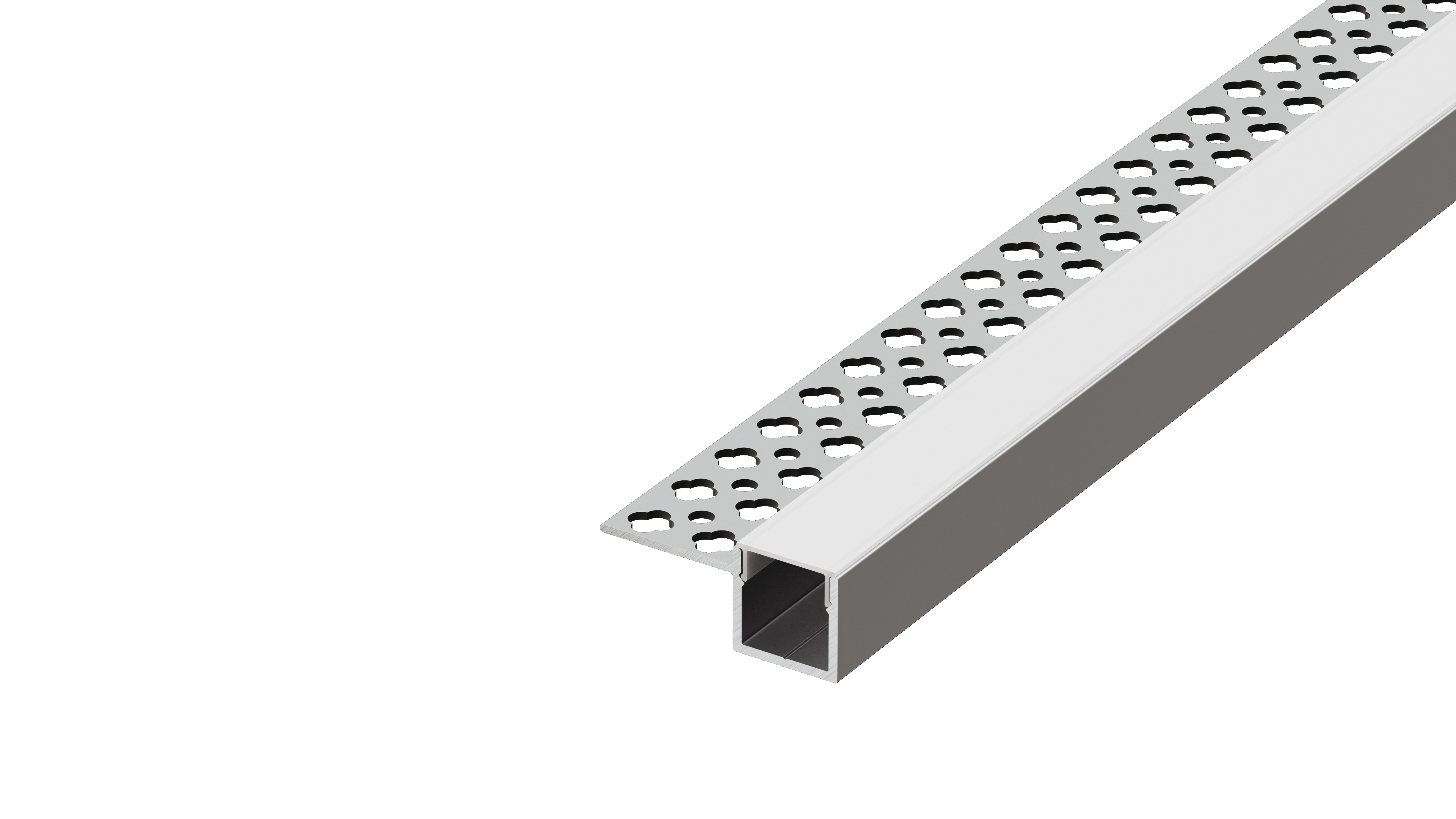 Встраиваемый алюминиевый анод. профиль под шпаклевку, 35,5х15х2000мм. В комплекте матовый экран, 4 торцевые заглушки, алюминий