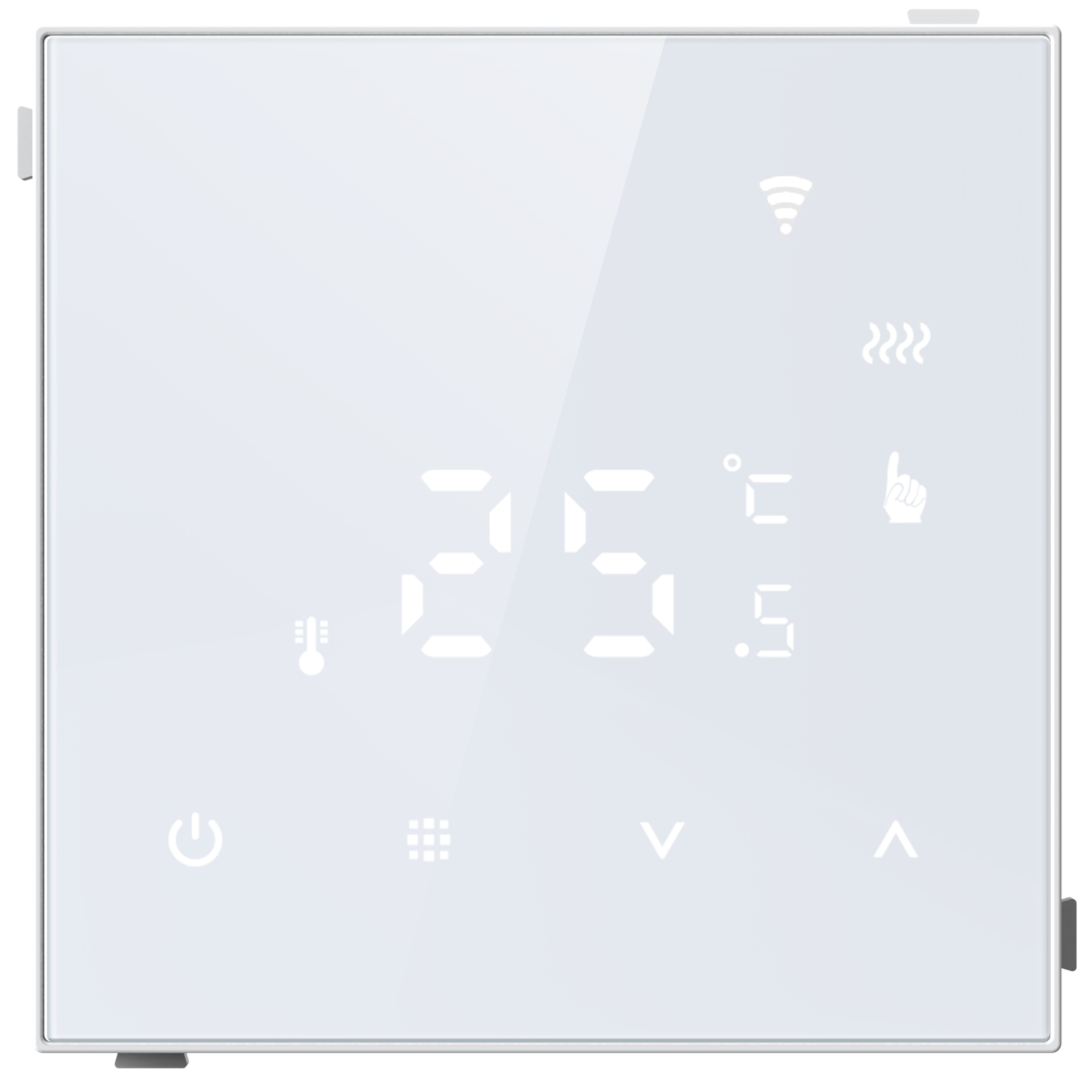 Donel Термостат с датчиком пола с Wi-Fi, программ. через приложение, 70*70 мм. белое стекло, серия DTEF