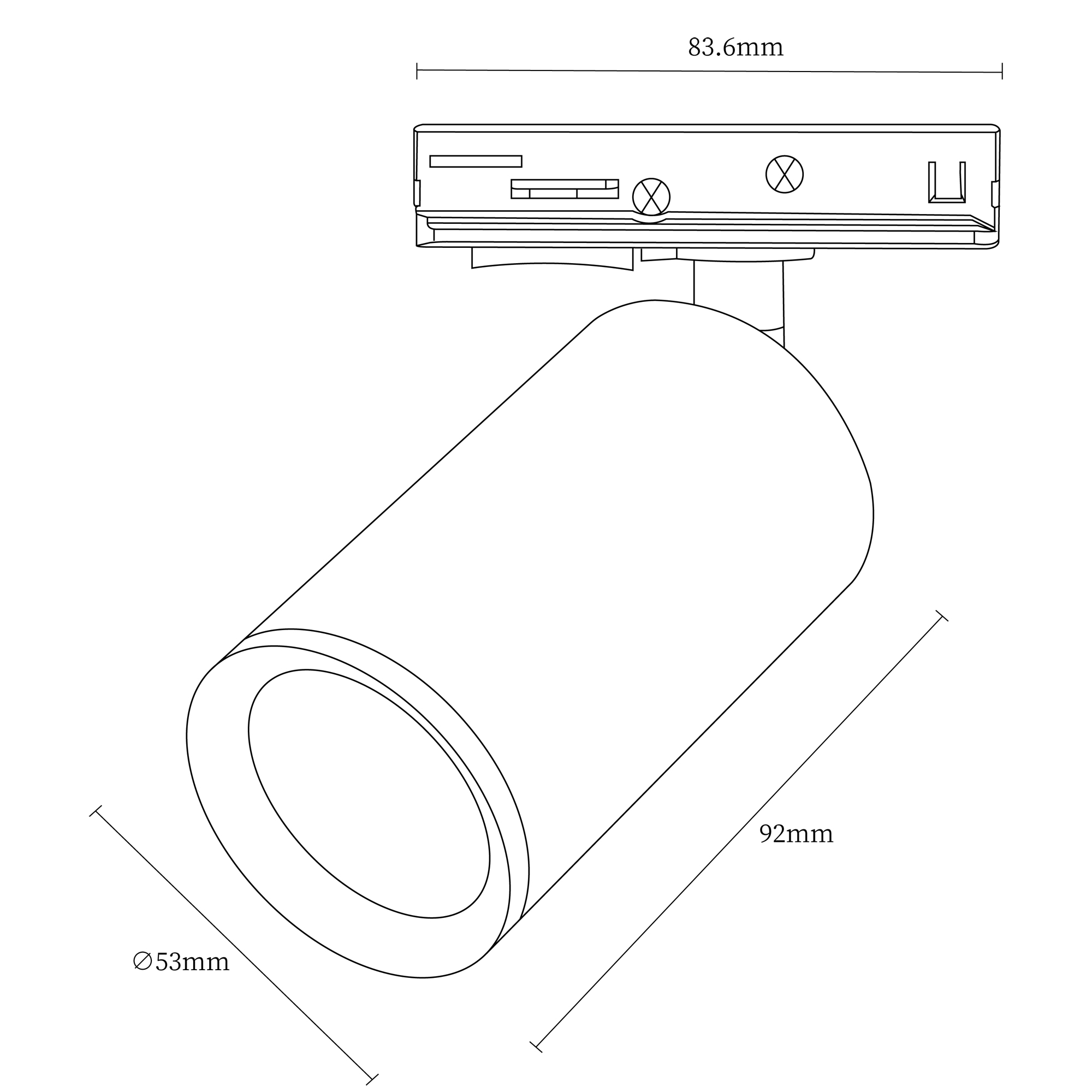 Светильник трековый, GU10, D52хH90мм, IP20, белый, без лампы