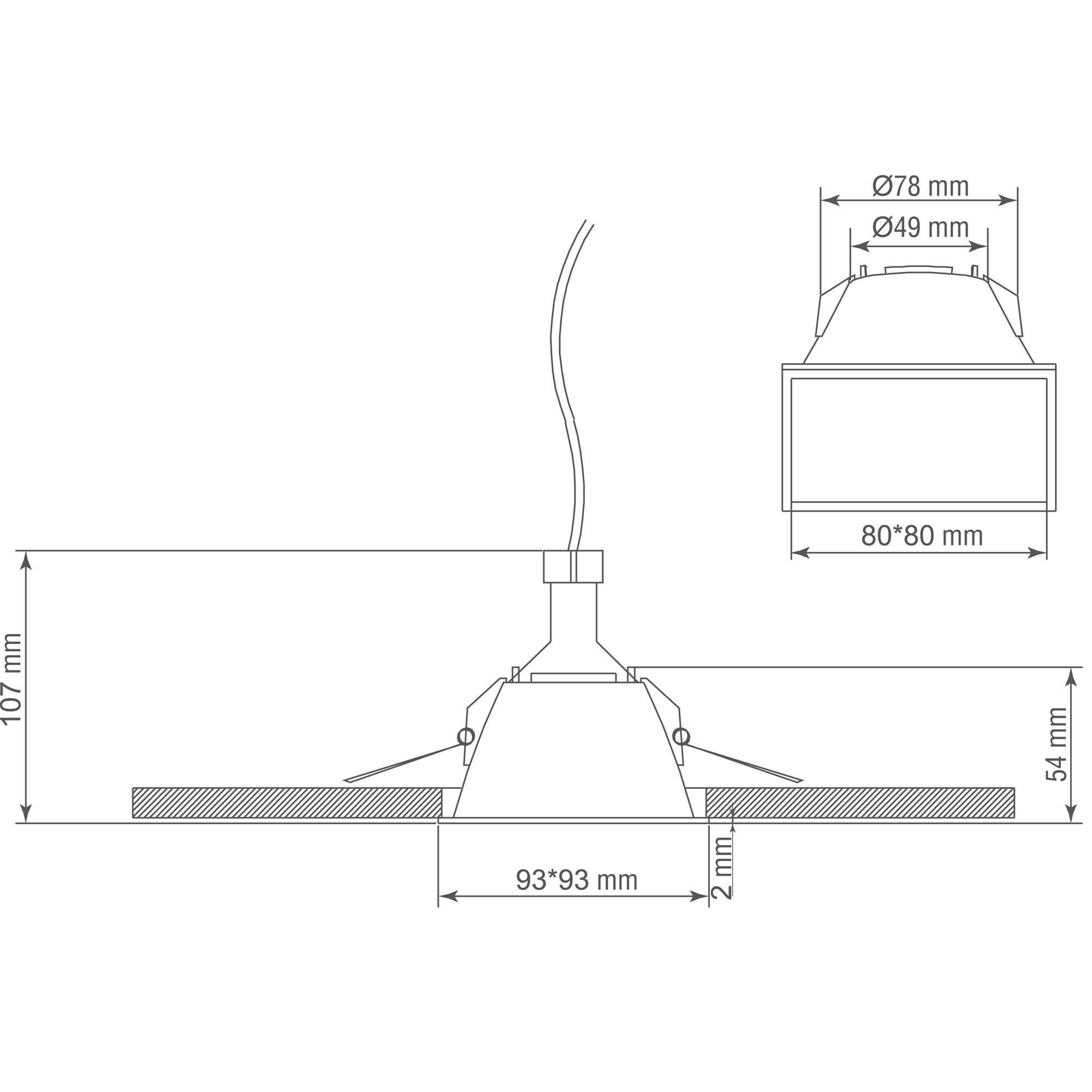 Светильник встраиваемый, под лампу GU10, D90х90xH53мм, материал РС, IP20, белый